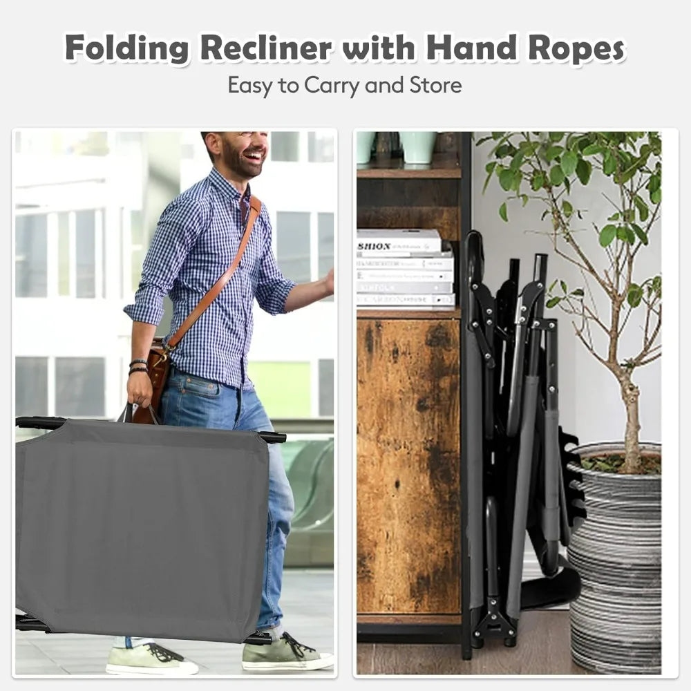 - With adjustable 5-level backrest and 2-level footrest, this ergonomic beach lounge chair allows you to choose different heights to meet your different needs.