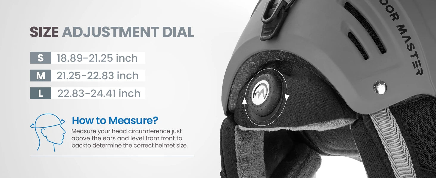 To determine the correct helmet size, wrap a measuring tape around your head. The tape should rest just above your ears and remain level around the circumference of your head. Small: 18.89-21.25 inch(48-54 cm), Medium: 21.25-22.83 inch(54-58 cm), Large: 22.83-24.41 inch(58-62 cm)